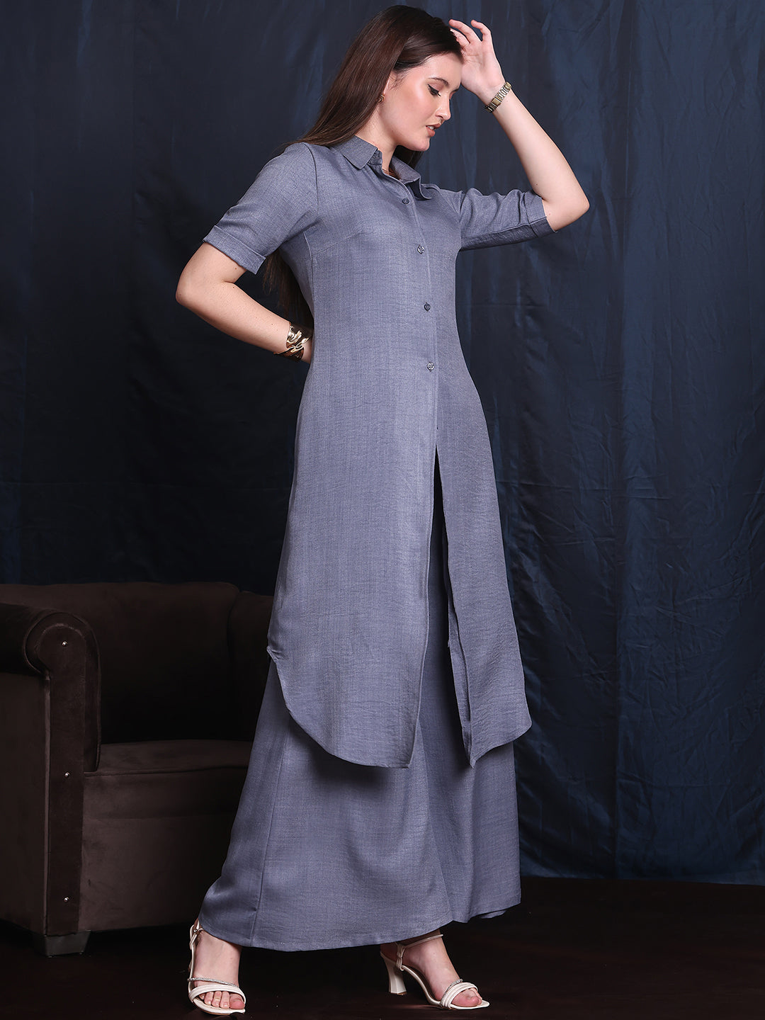 Exude Brave Heart Linen Wide Leg and Collar Top Set