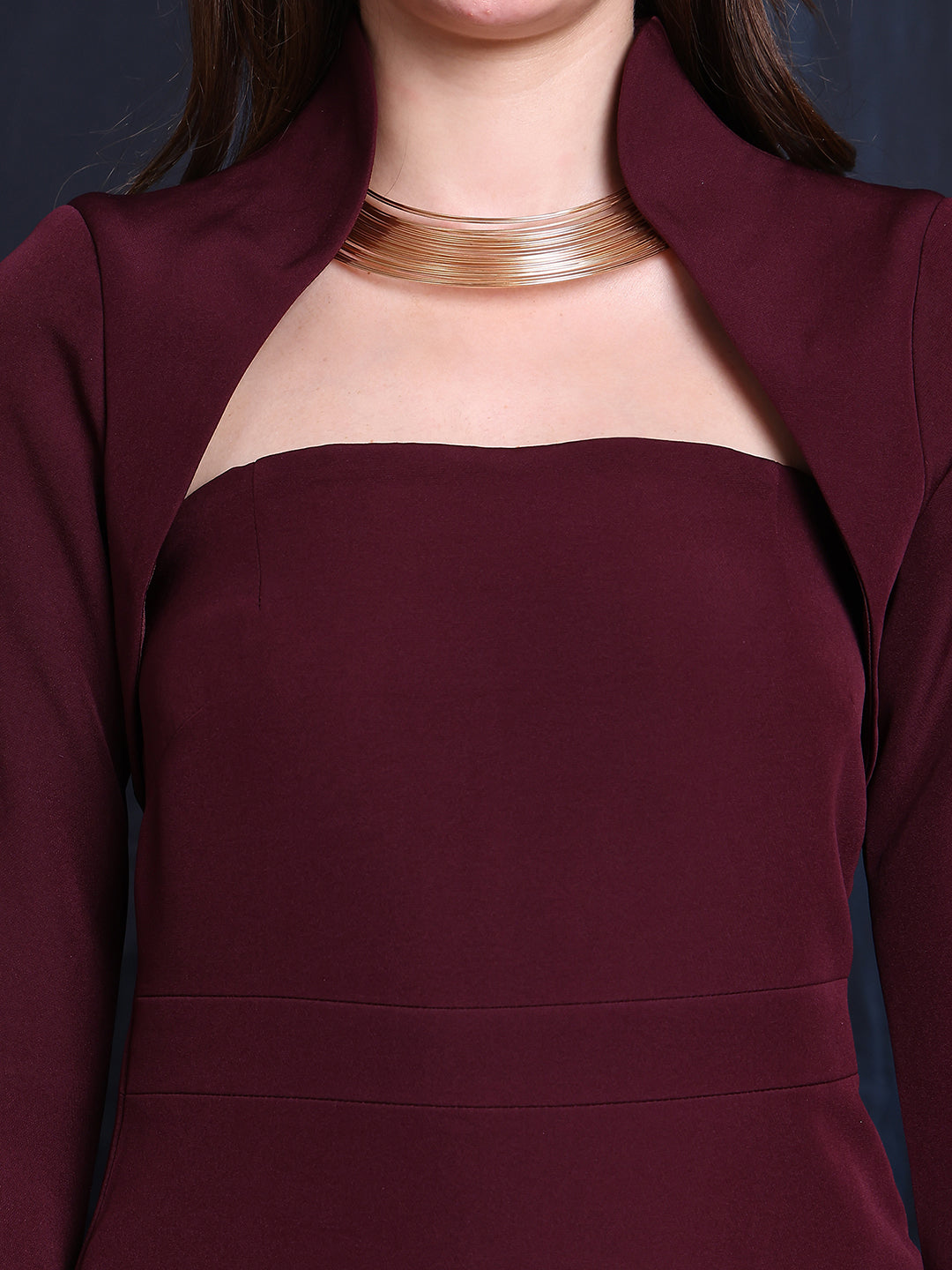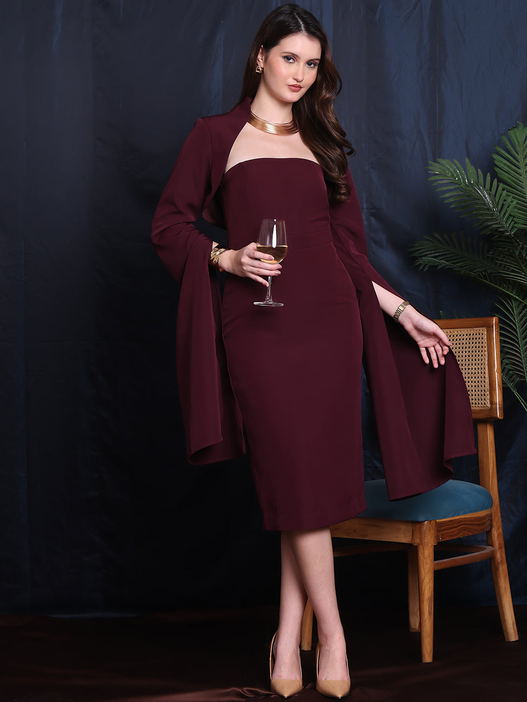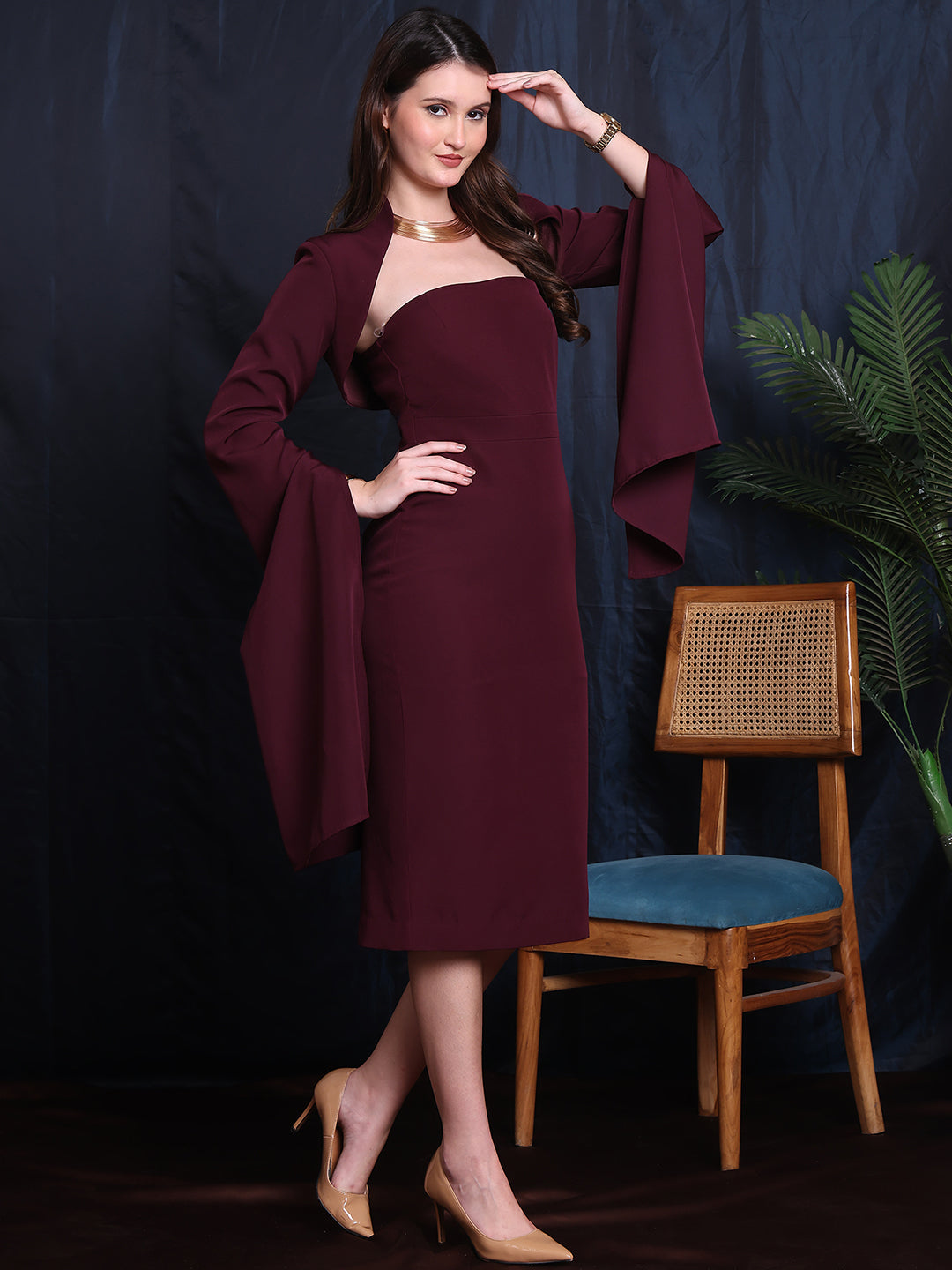 Exude Cosmic Couture 2 Piece Dress Set, Midi Dress With Shrug Blazer (Wine)
