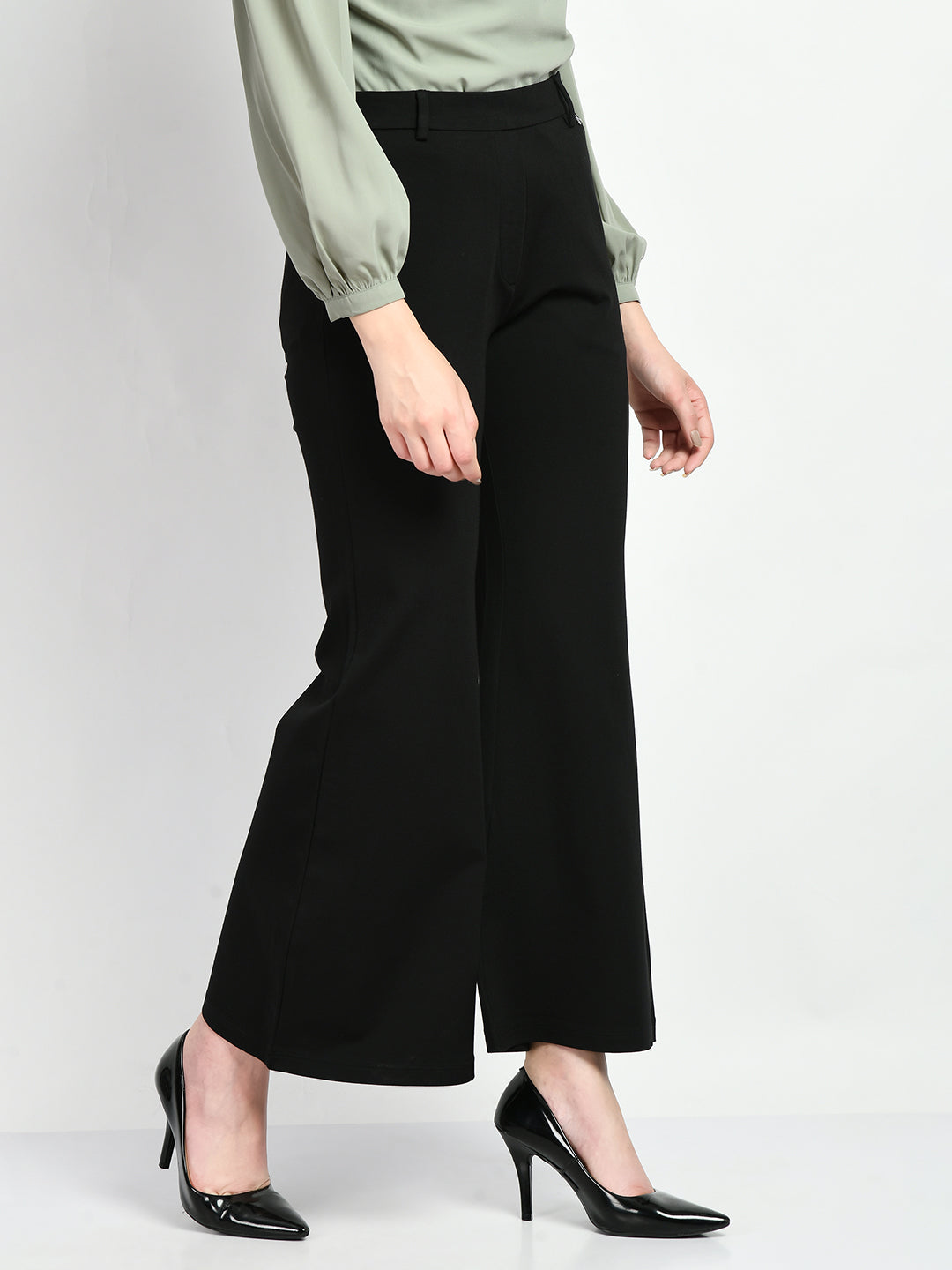 Exude Accomplishment Solid 4 Way Stretch Bootcut Trousers (Black)