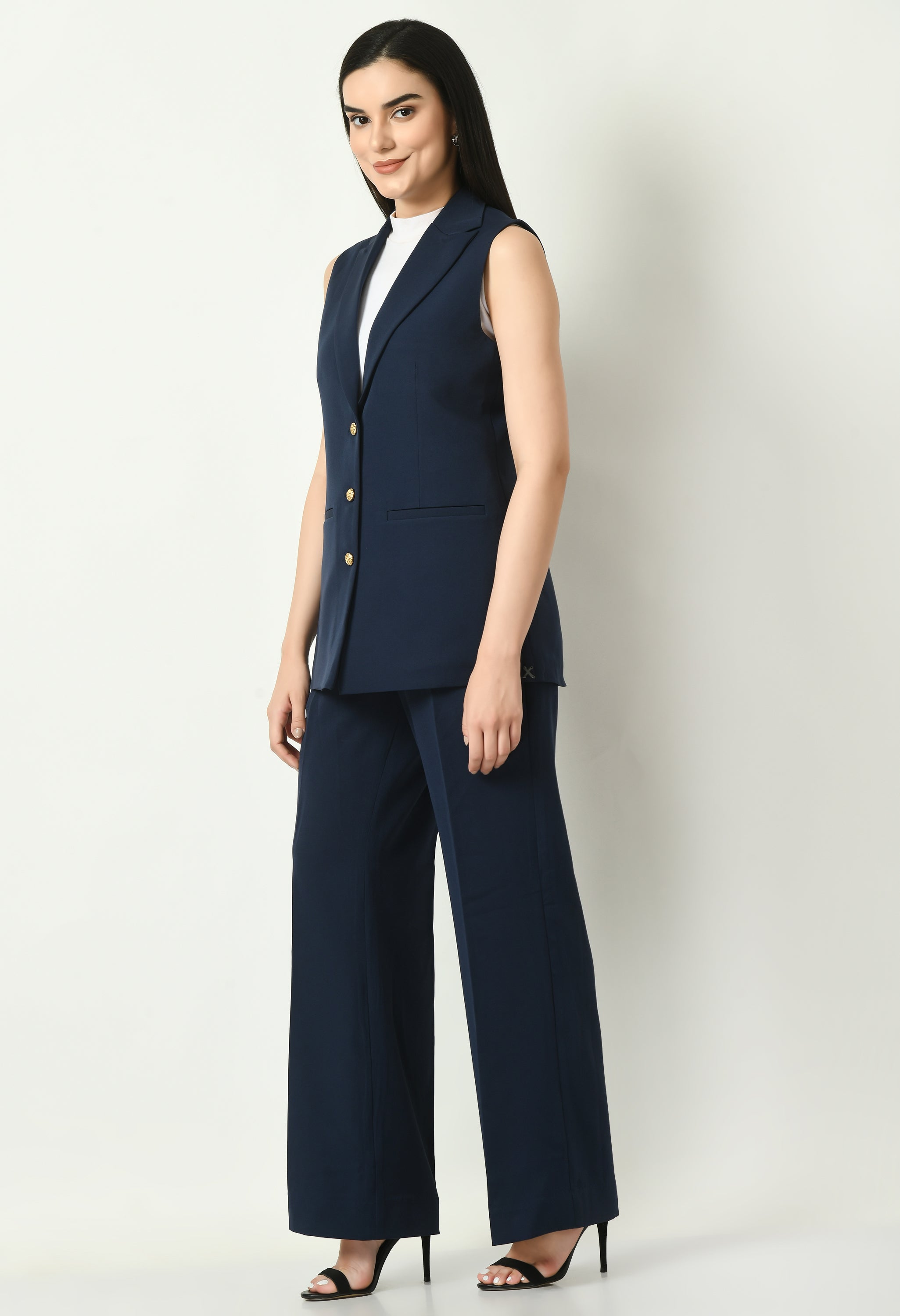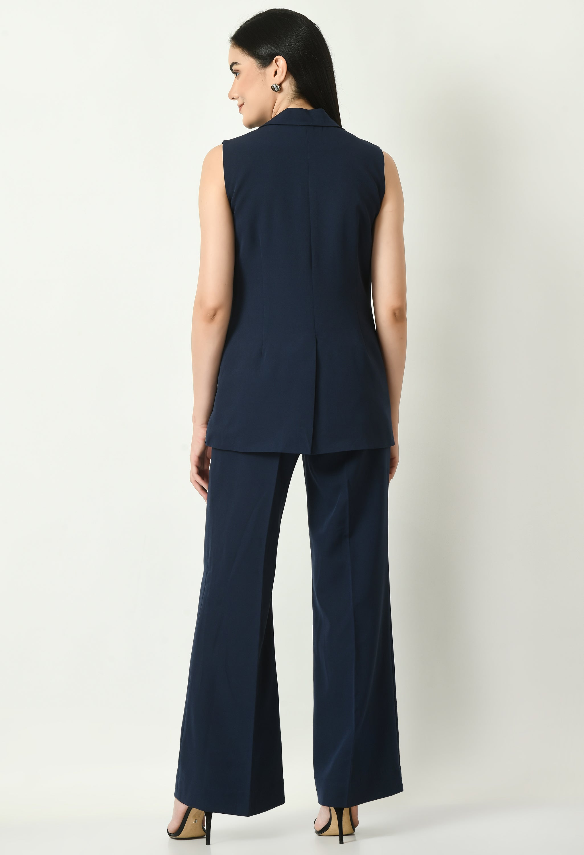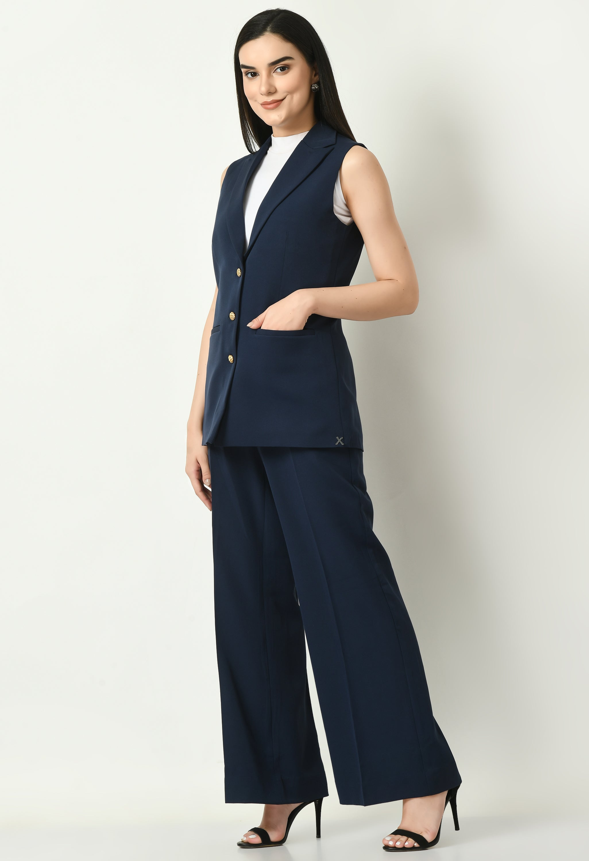 Exude Aspiration Sleeveless Blazer with Bootcut Trousers (Navy)