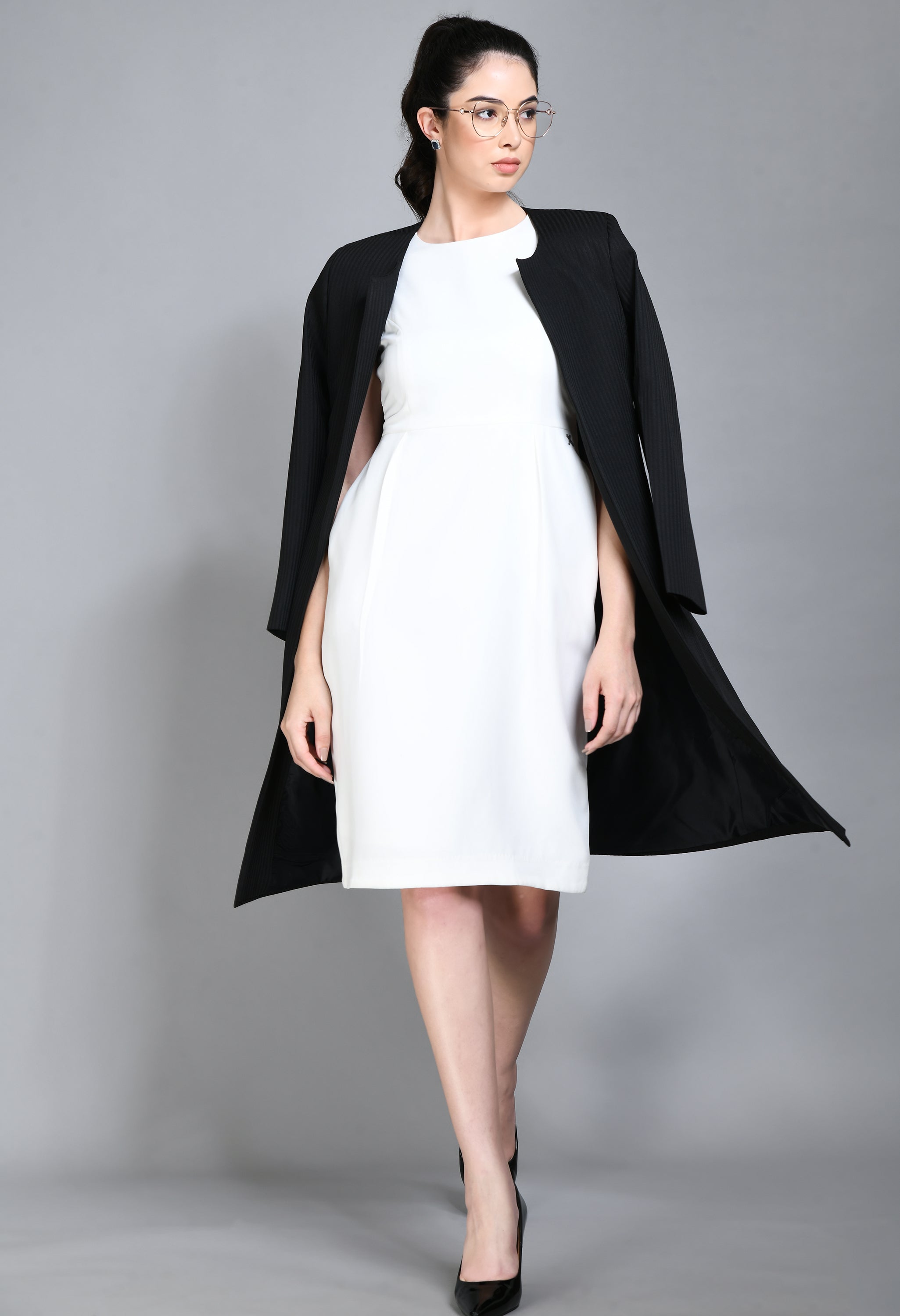 A classic sleeveless sheath dress in white, with functional pockets. The dress has been stitched using the softest of linings to ensure it is non-transparent and provides a quality finish. The colour may vary slightly according to device settings