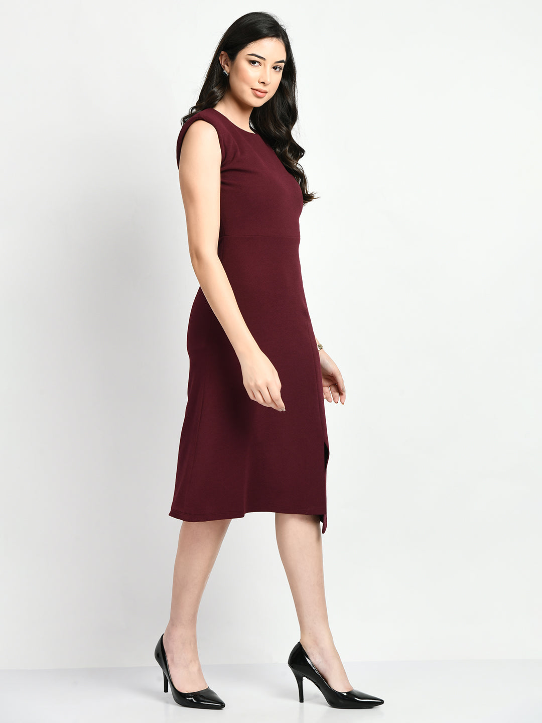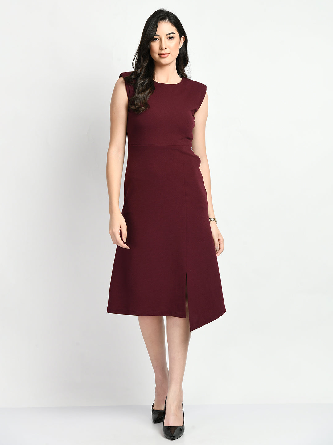 Exude Finesse Asymmetrical A-line Dress (Wine)
