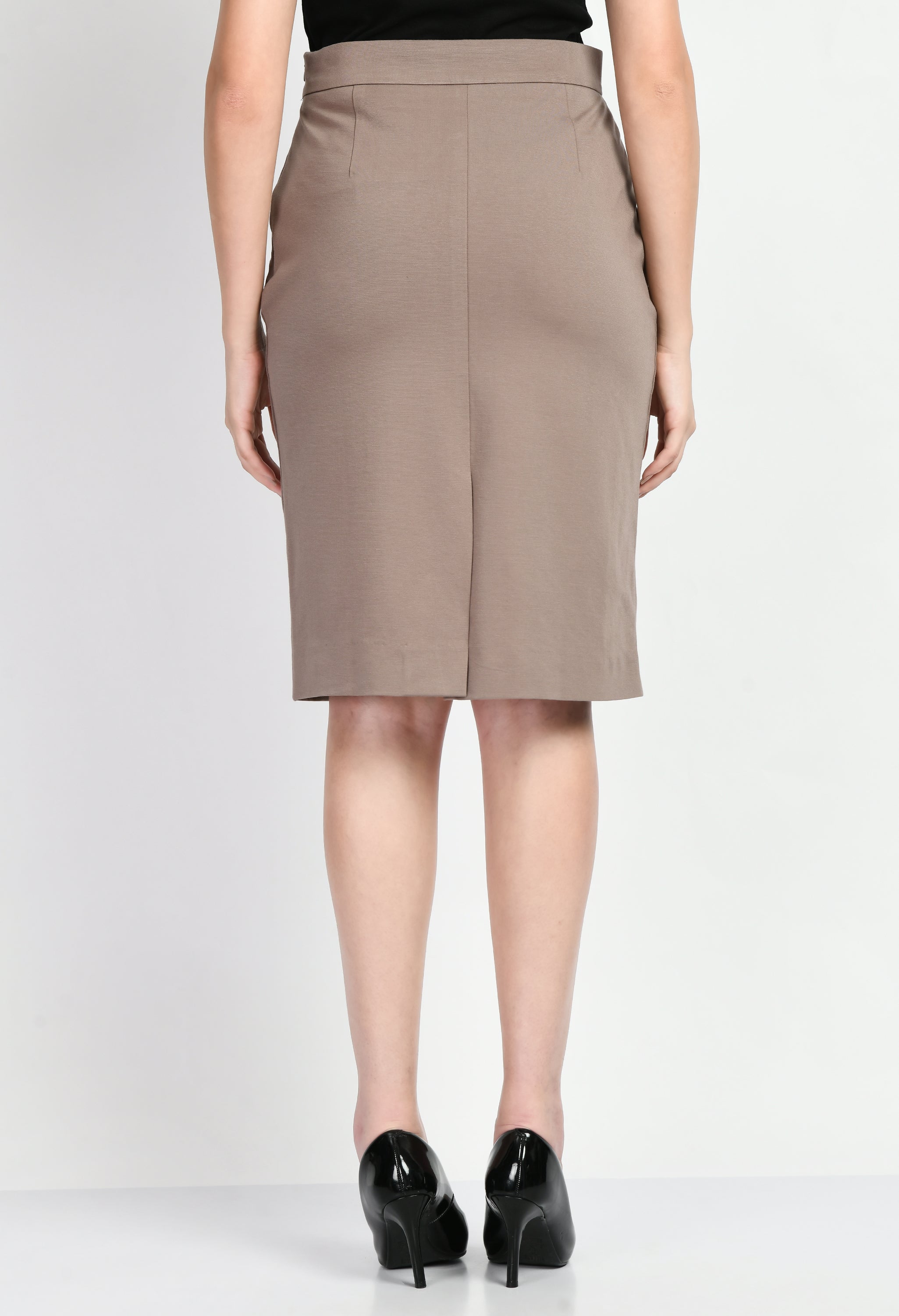 Exude Leadership Solid 4 Way Stretch Pencil Skirt (Camel Beige)