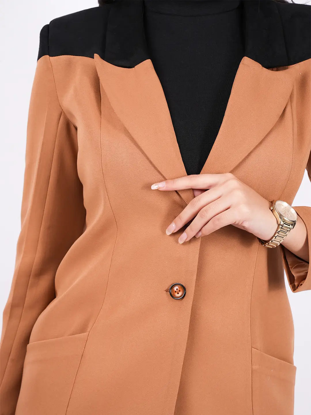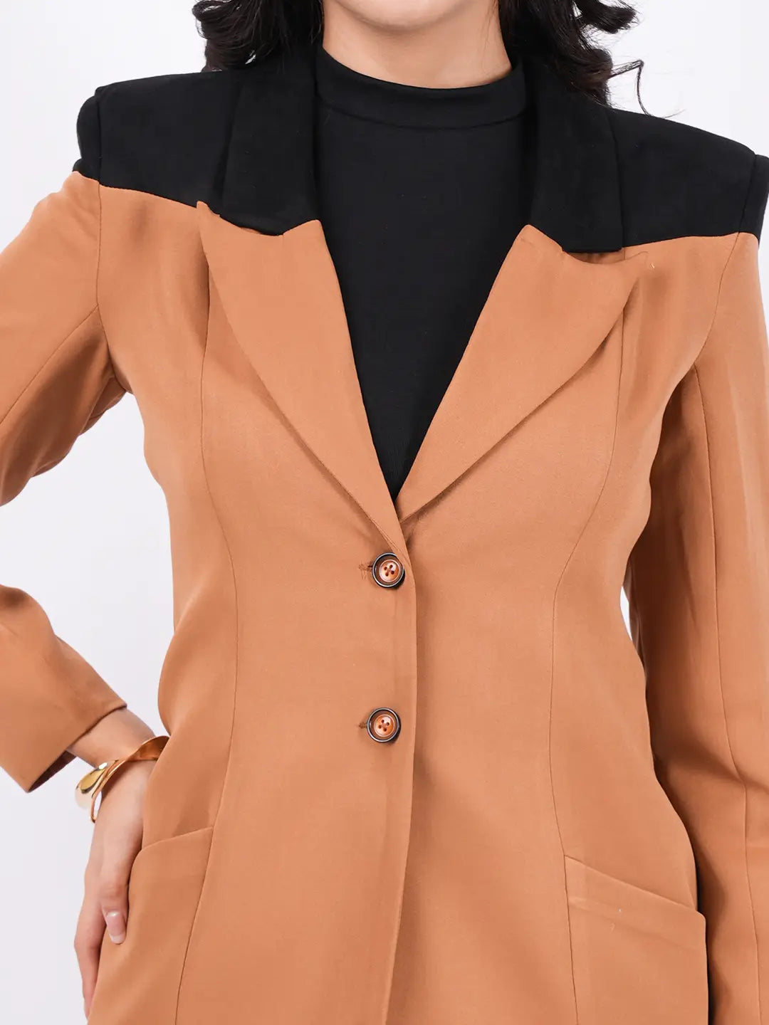 Smooth tailored shell with suede contrast, lined in taffeta - gentle dry clean only.