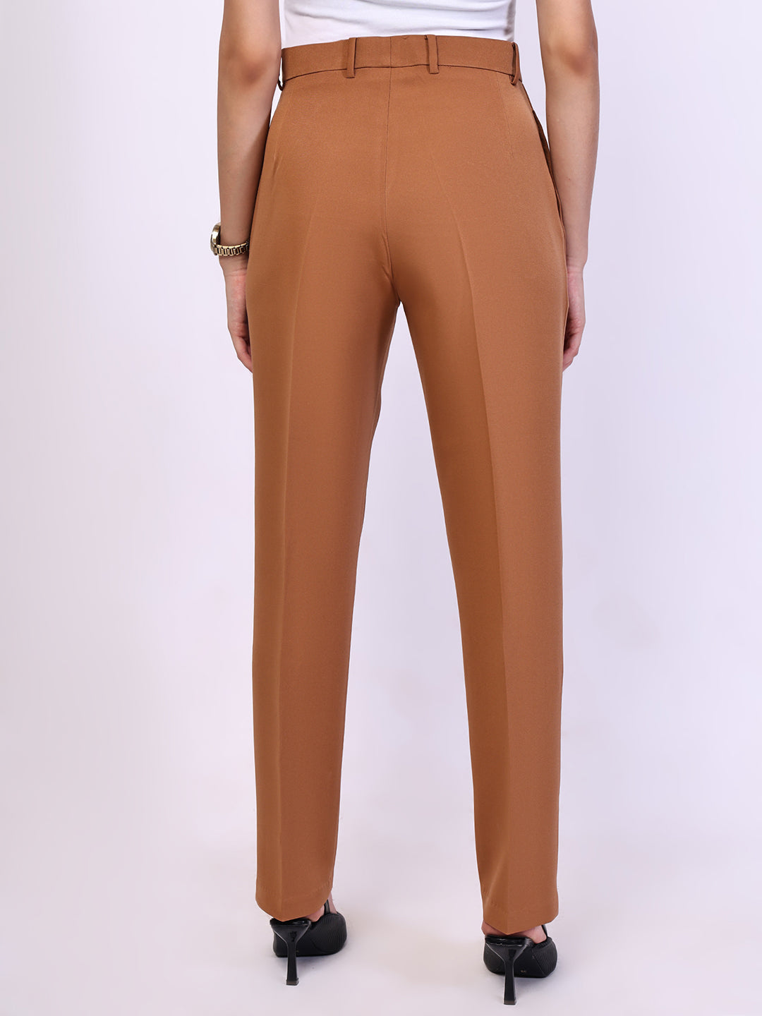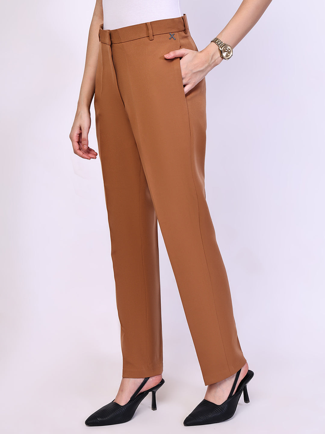 Elevate your everyday style with these classic tan brown straight fit trousers, designed for both comfort and sophistication. Featuring a tailored silhouette, these trousers offer a flattering fit that skims the body without being restrictive. The addition of practical pockets adds functionality, making them perfect for keeping your essentials close at hand.
