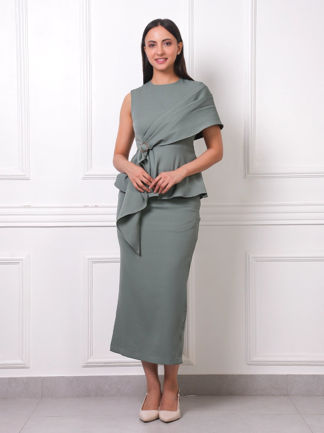 Sage Green Draped Peplum Top